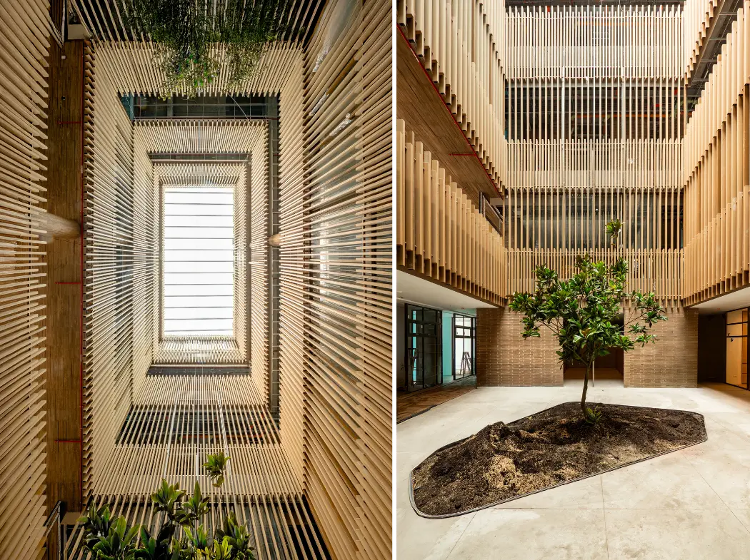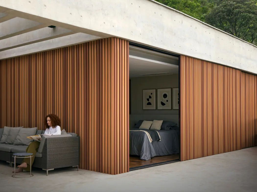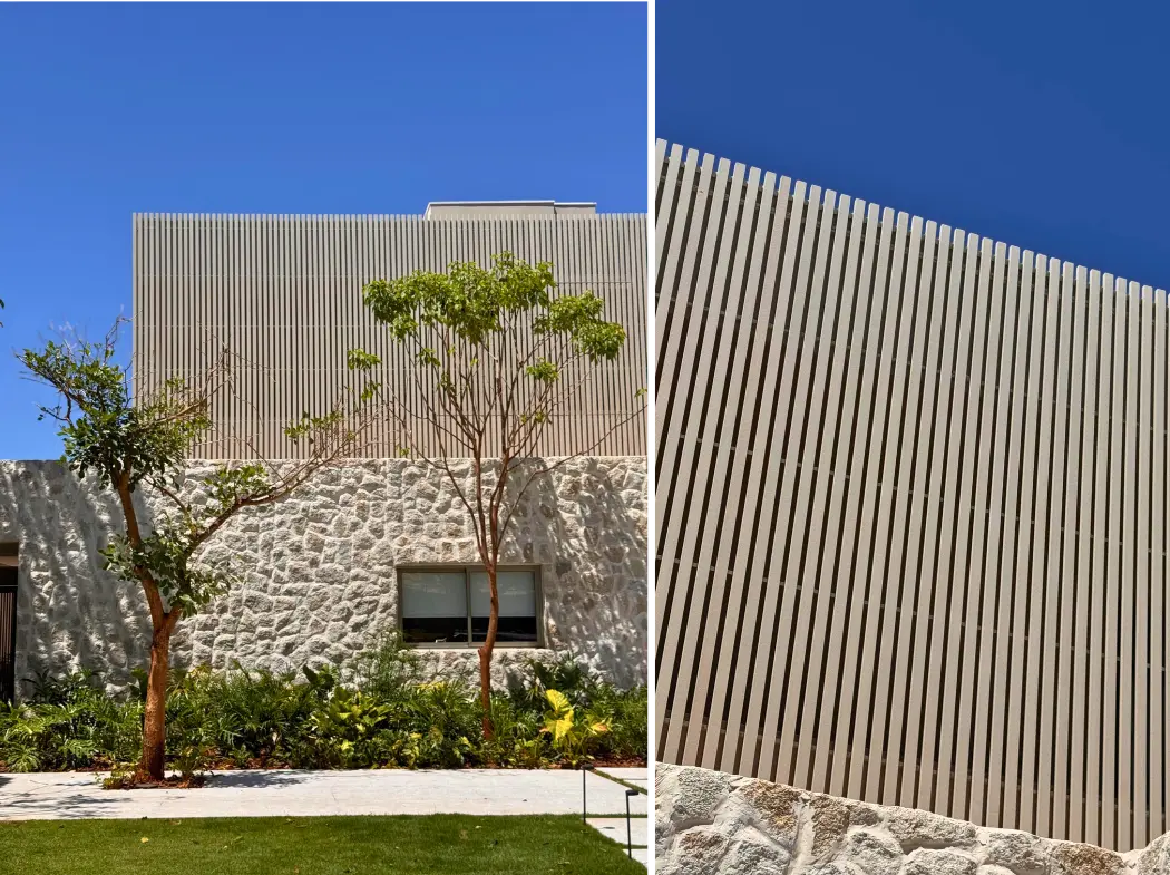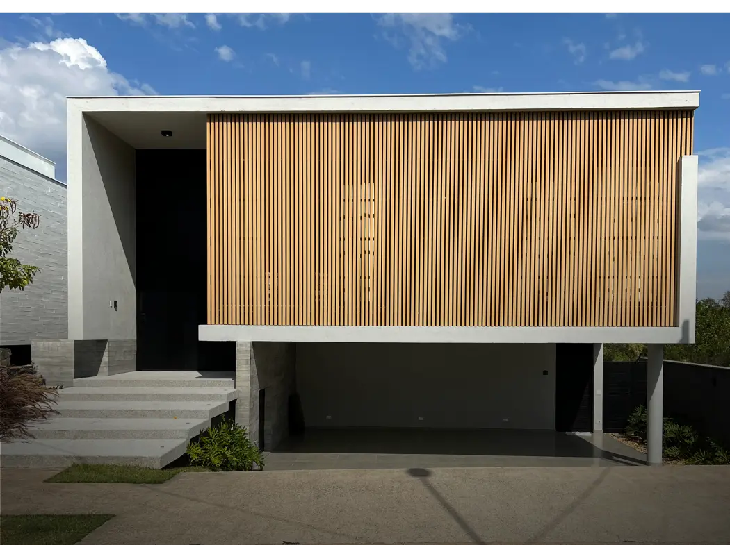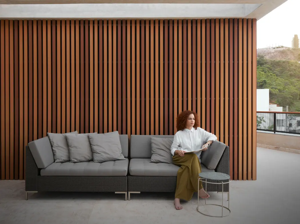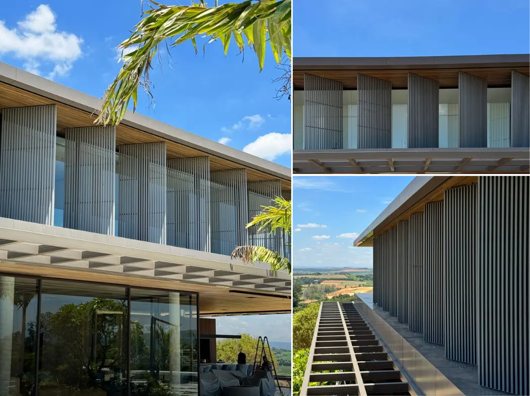 Brises compostos de madeira ecológica e HDPE não estruturais. Possui grande resistência às condições climáticas para uso em ambientes externos e internos, com possibilidade de criação de estruturas leves e flexíveis e adaptáveis ao seu projeto