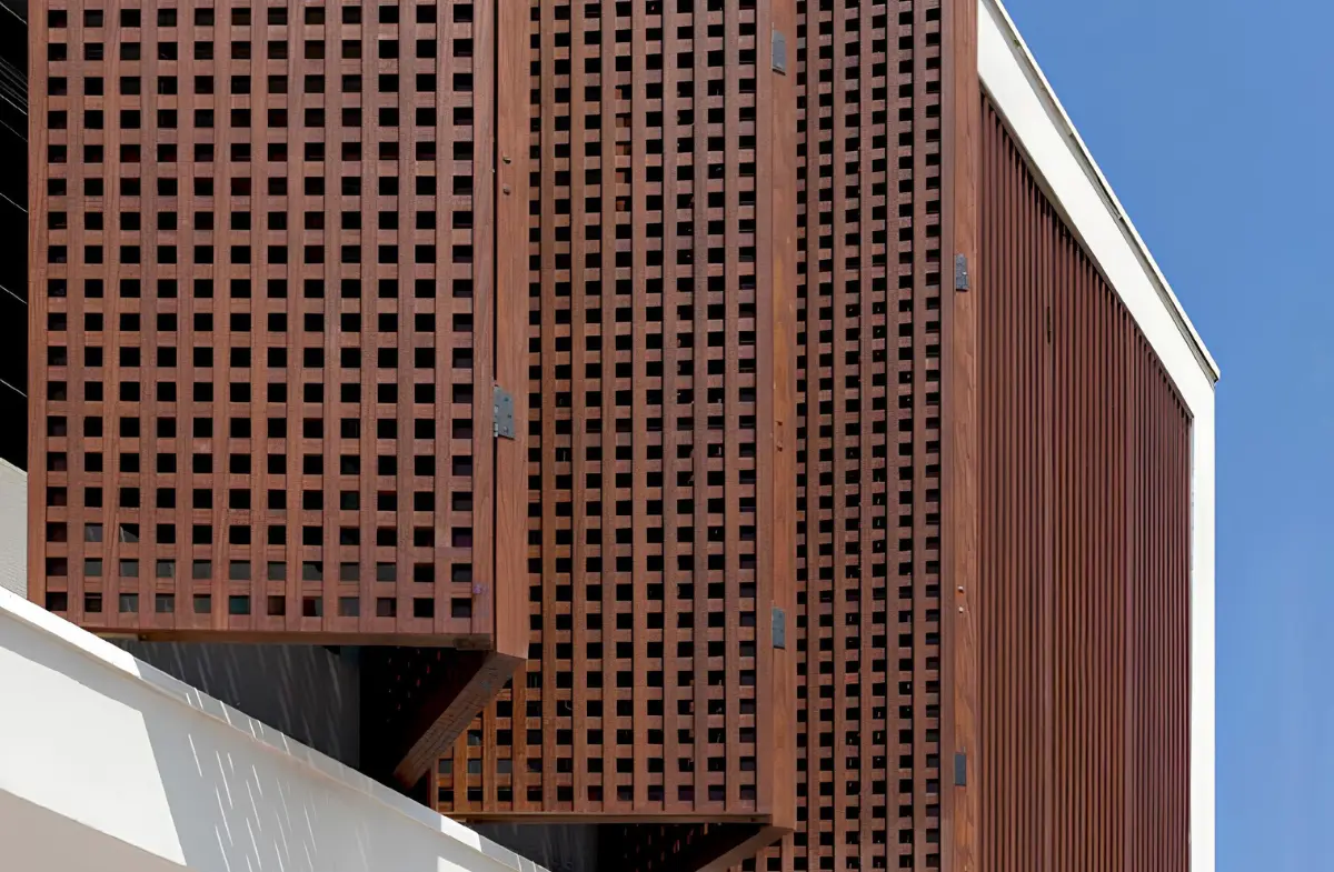 Ideal para fachadas que respiram, paredes que filtram a luz com elegância e divisórias que oferecem privacidade sem perder a conexão visual. Este produto agrega aconchego por meio de sua textura natural tipo madeira e se destaca pelo design contemporâneo e minimalista. Além disso, oferece alta durabilidade, resistência às intempéries e uma abordagem sustentável, tornando-se um aliado essencial para projetos arquitetônicos modernos.