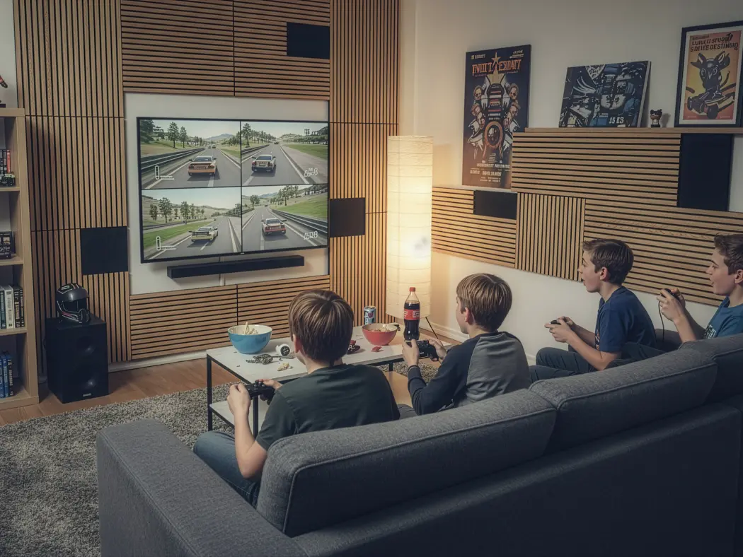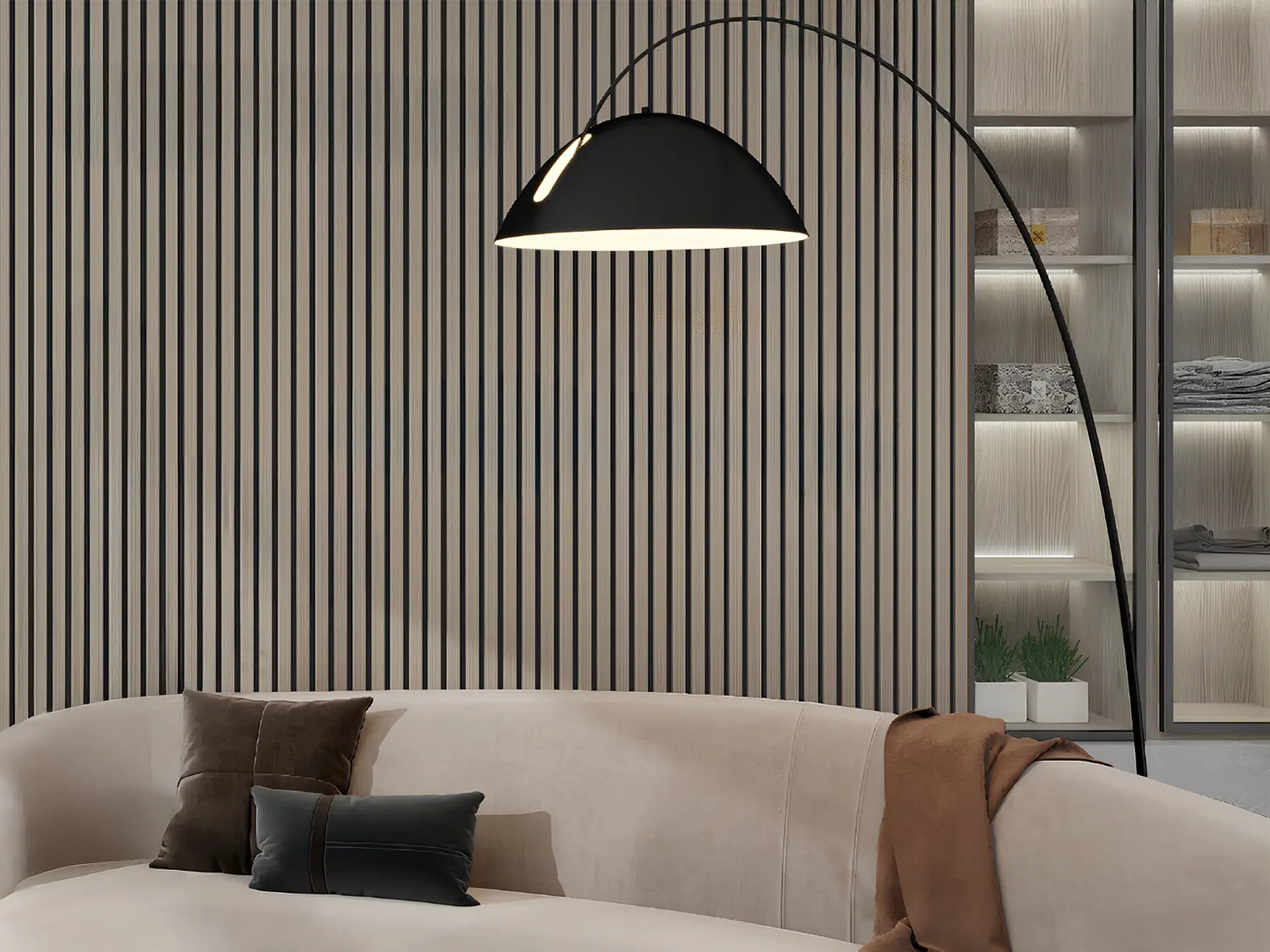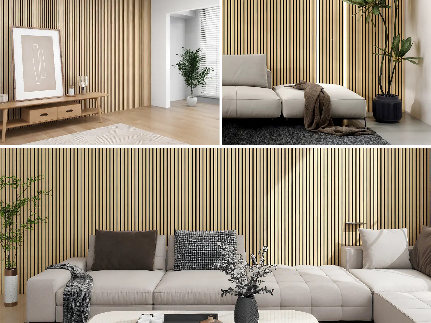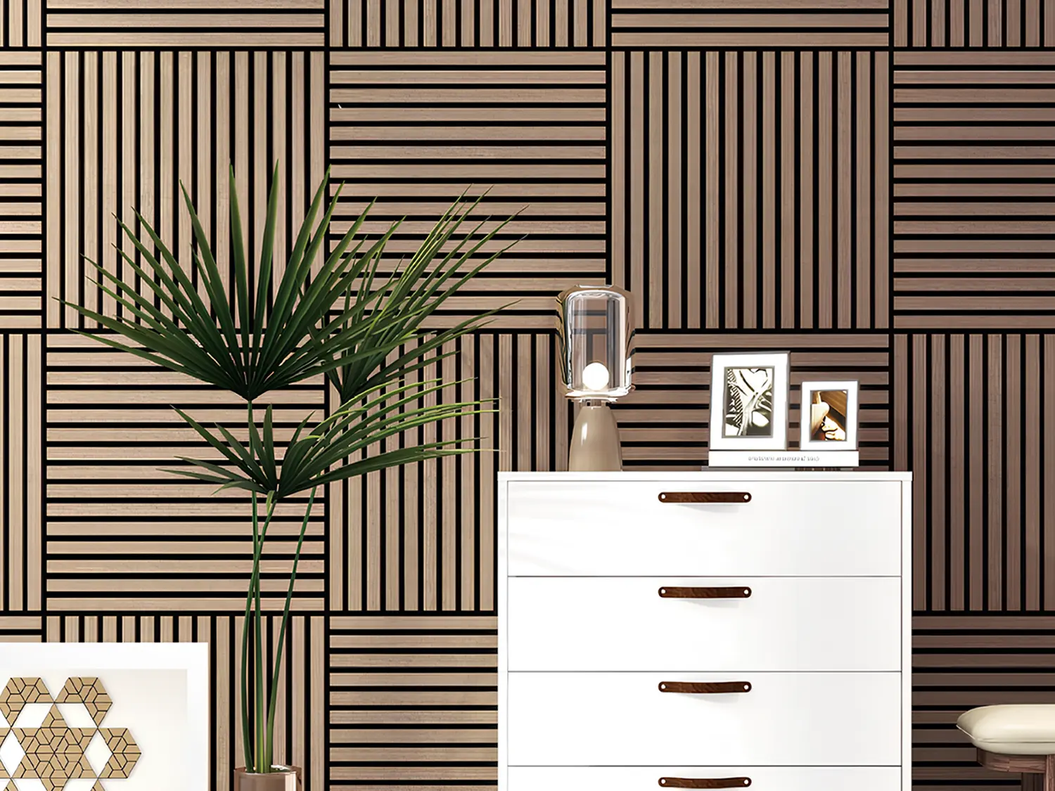 Painéis acústicos de madeira que combinam conforto, estética e funcionalidade. Compostos por MDF e fibra de poliéster PET, com propriedades de absorção sonora, oferecem um acabamento aconchegante. Seu design em estilo painel ripado melhora a absorção acústica. Uma solução sustentável e versátil para valorizar o design de qualquer ambiente.