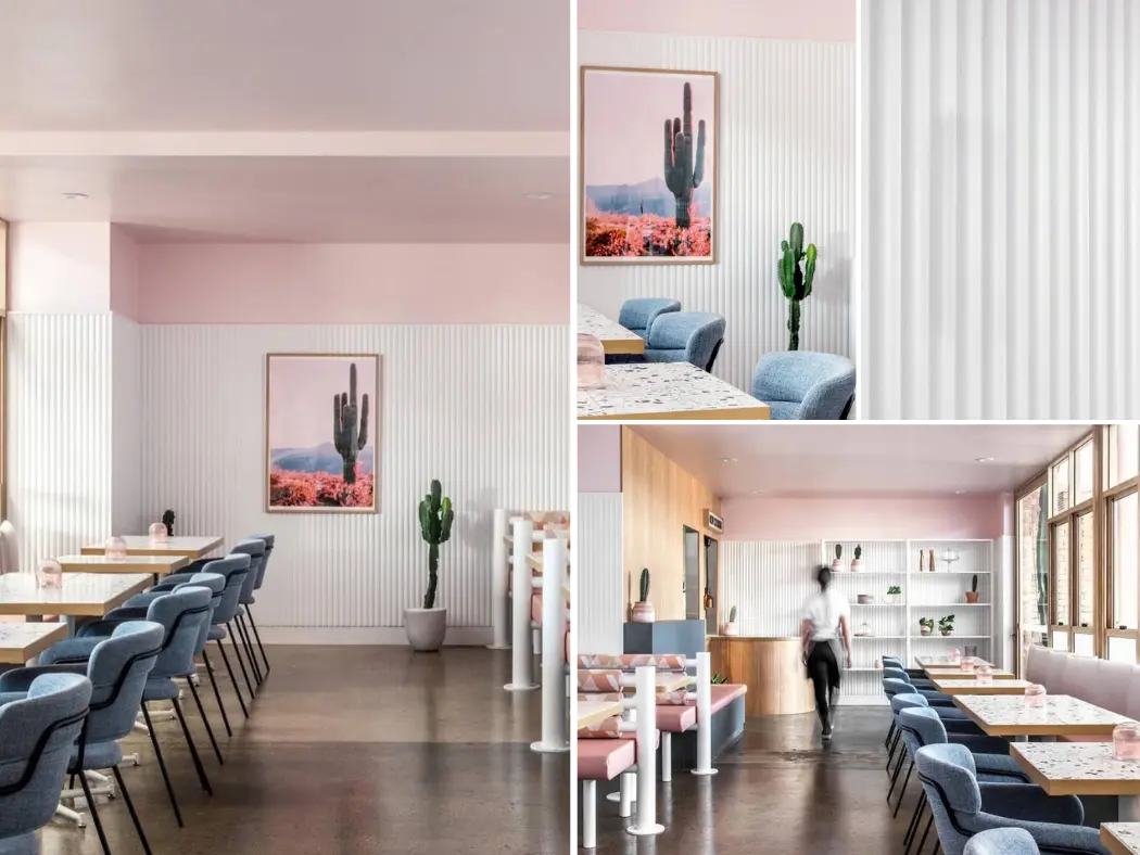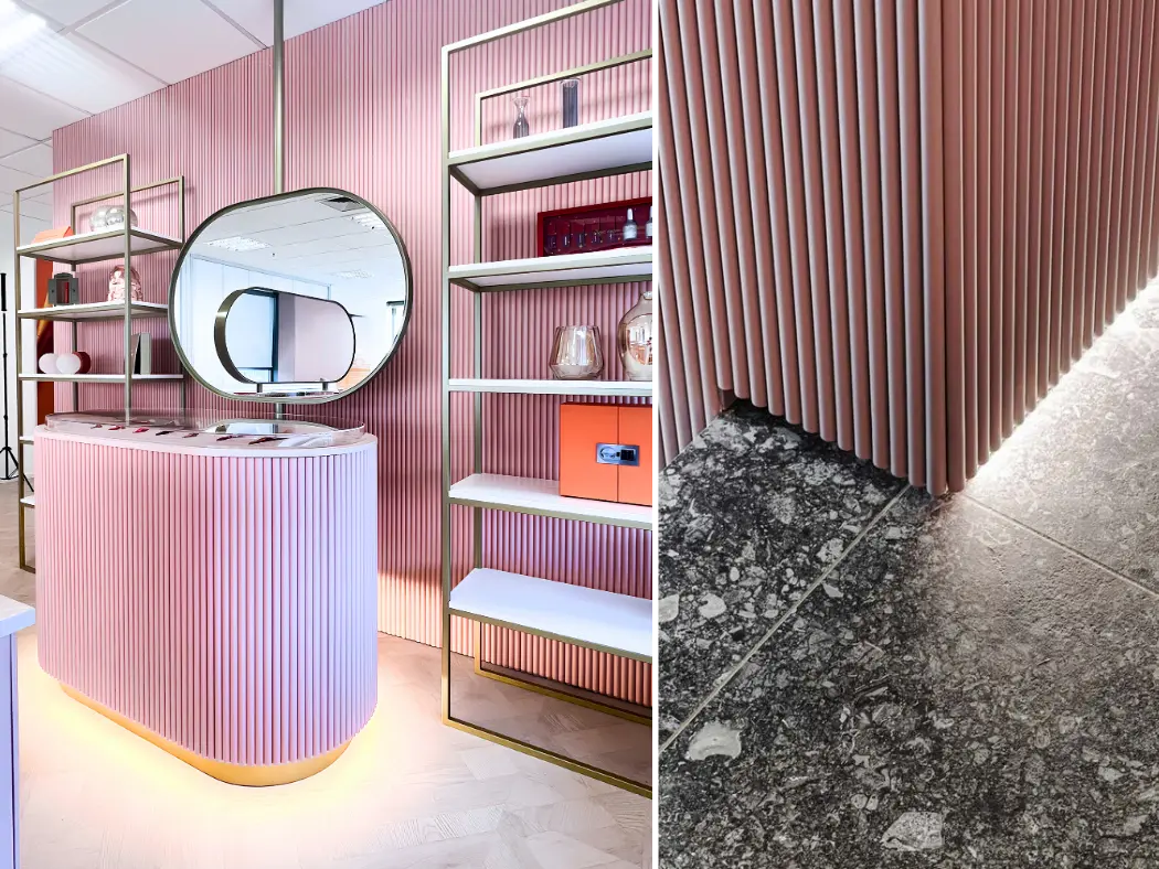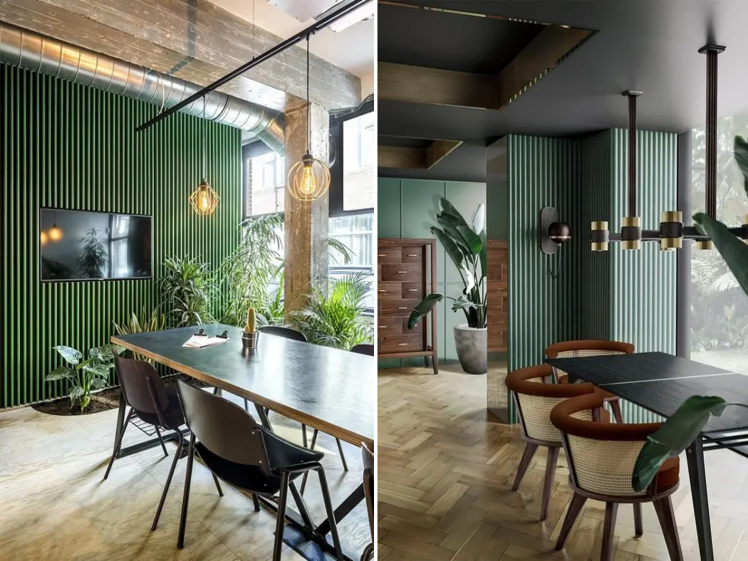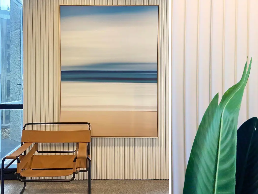 Revestimentos para interiores compostos de madeira ecológica e HDPE com diversas opções de formas, cartela de cores variada e fácil instalação.