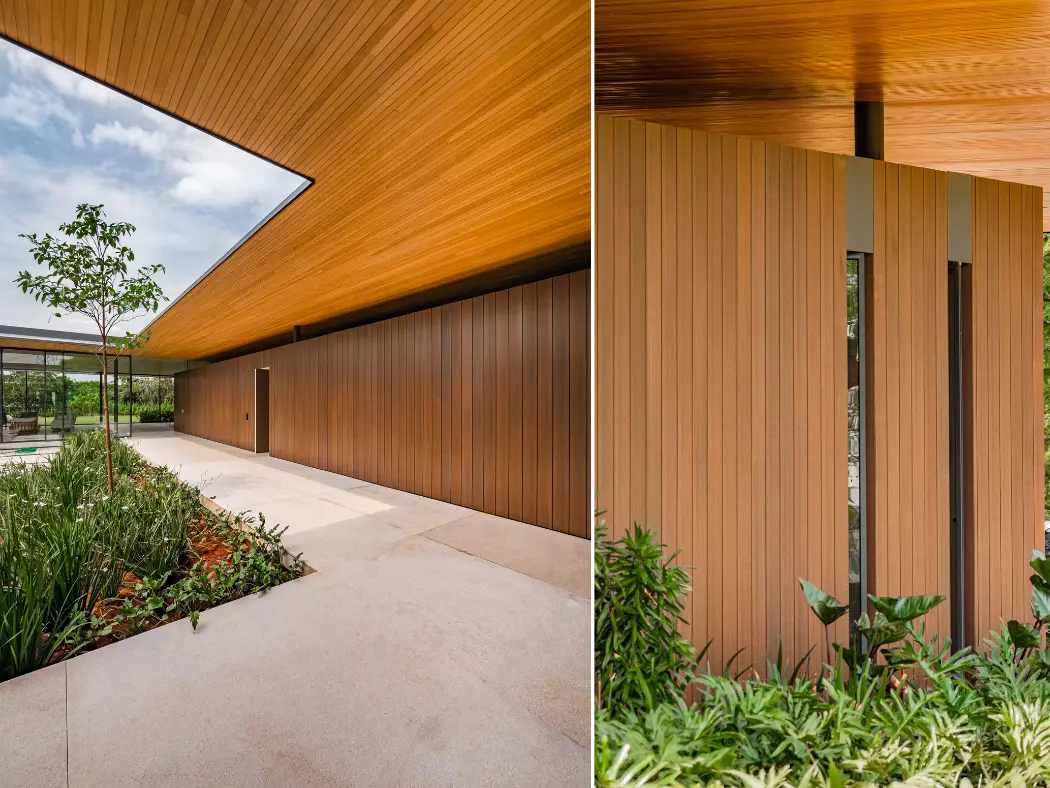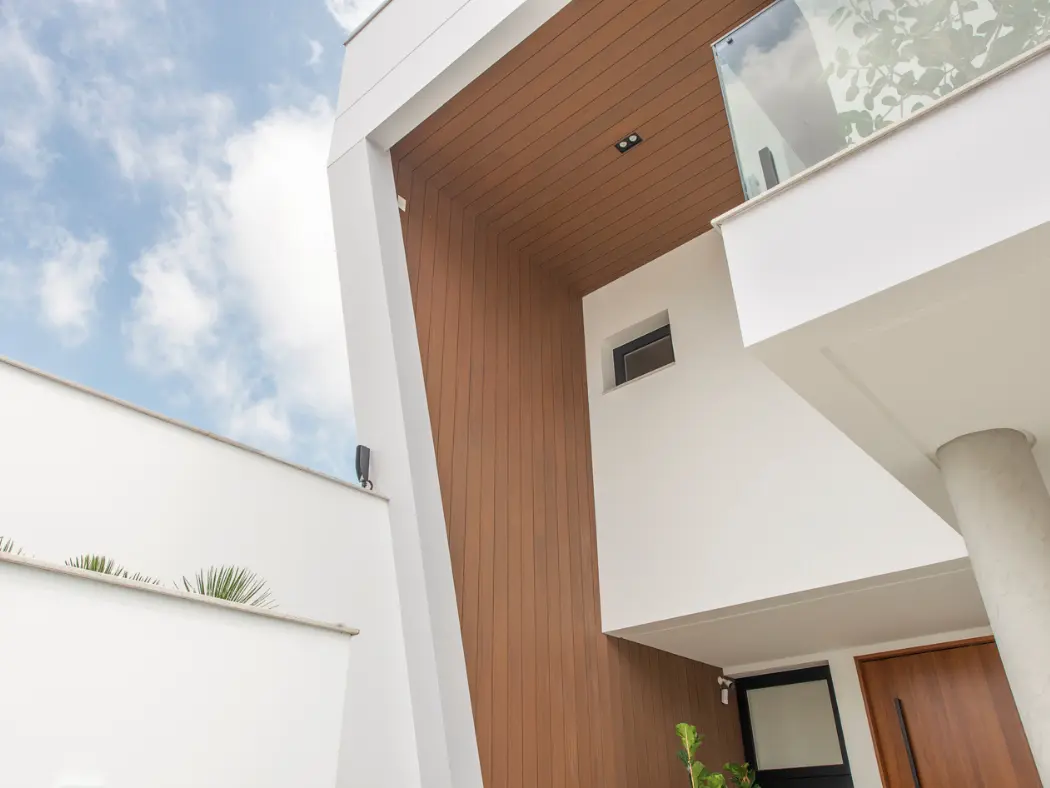 Painéis de madeira ecológica de alta performance, ideais para áreas internas e externas. Com textura natural, durabilidade superior e sistema de fixação oculta, oferecem acabamento sofisticado, baixa manutenção e o equilíbrio perfeito entre design e funcionalidade. 2