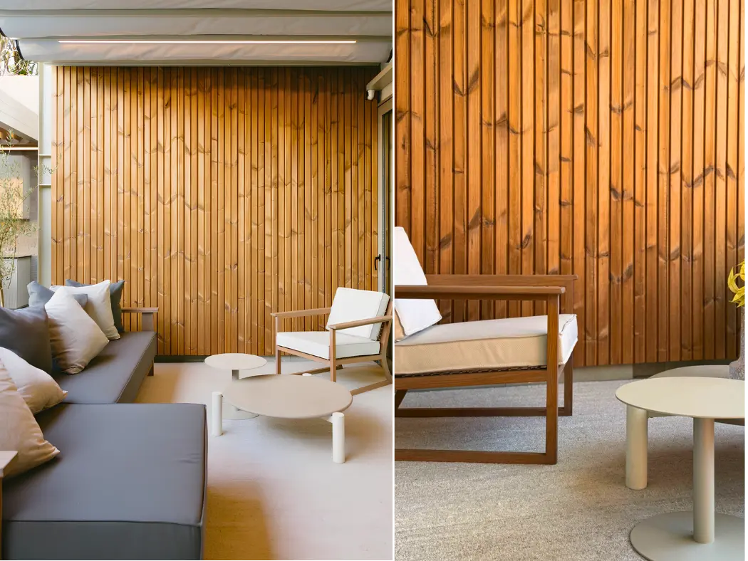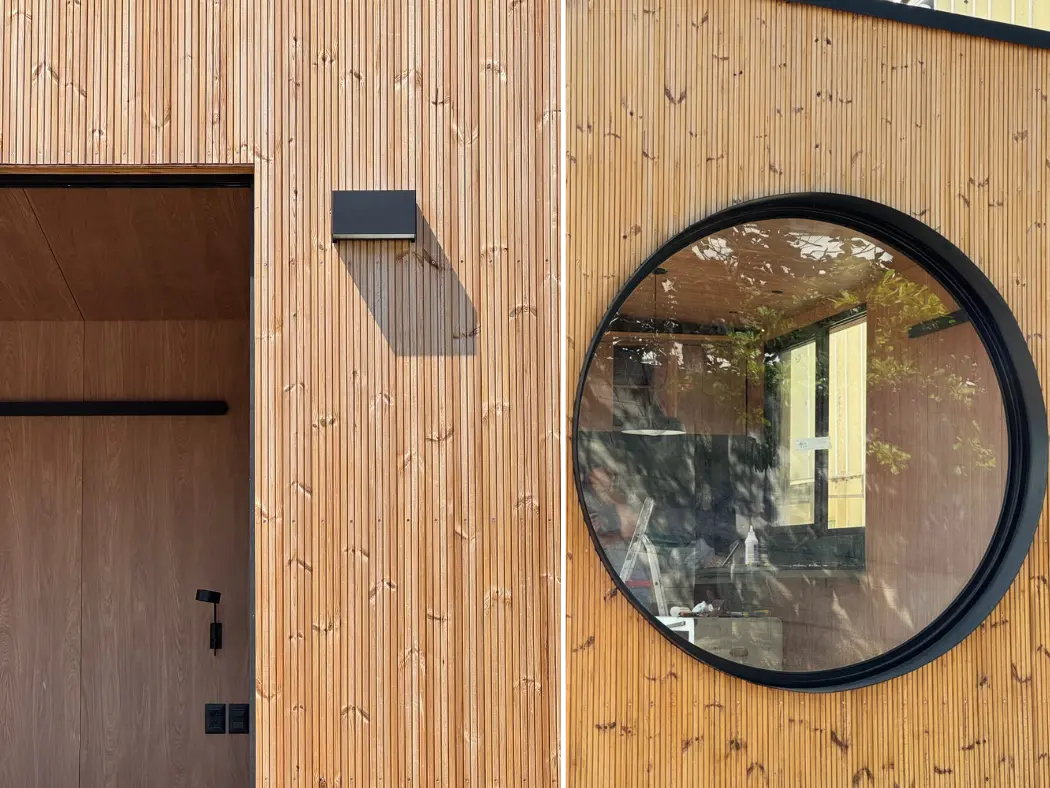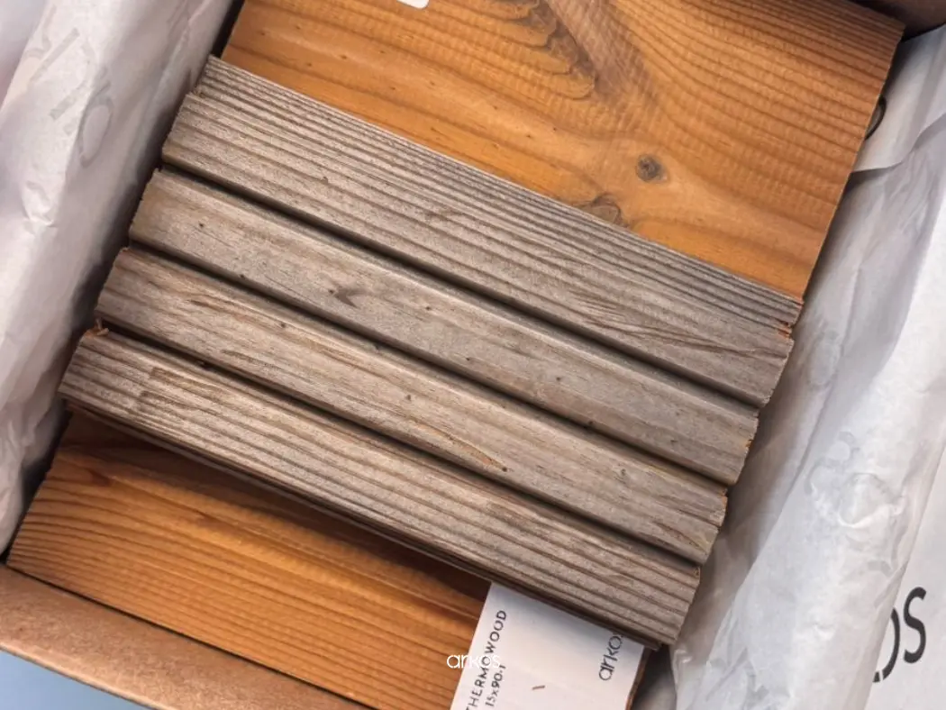 Thermowood é produzido a partir de pinus, abeto ou álamo, sendo uma solução sustentável e durável. Por meio de um processo natural de tratamento térmico, a madeira é modificada com calor e vapor de água, melhorando significativamente suas propriedades e ampliando suas aplicações.